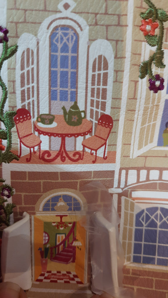 The Victorian dolls house is a pretty design with a little front door that opens and a cute umbrella design as the zip tags.